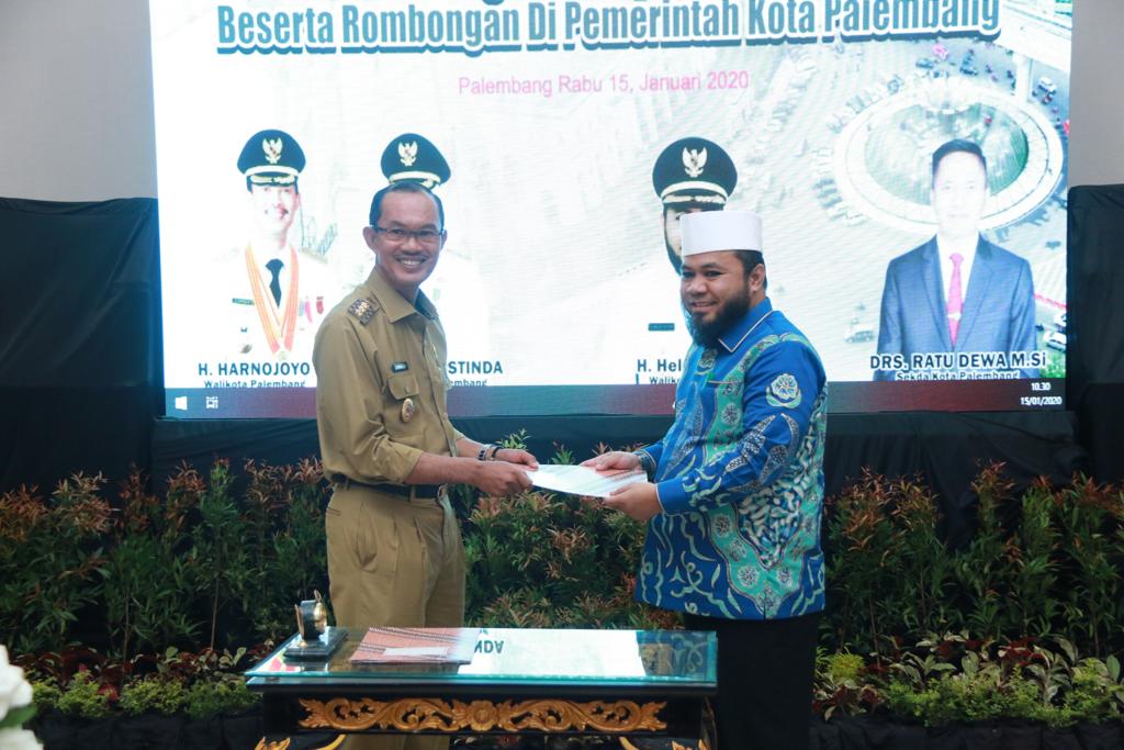 KORDANEWS-Dua Walikota adakan kesepakatan dengan menandatangi bersama pendayagunaan potensi Daerah Guna Peningkatan Kehidupan Bermasyarakat yang Religius yaitu antara Walikota Palembang H Harnojoyo dan Walikota Bengkulu H Helmi Hasan yang dilaksanakan dalam kunjungan kerja Walikota Bengkulu di Palembang.