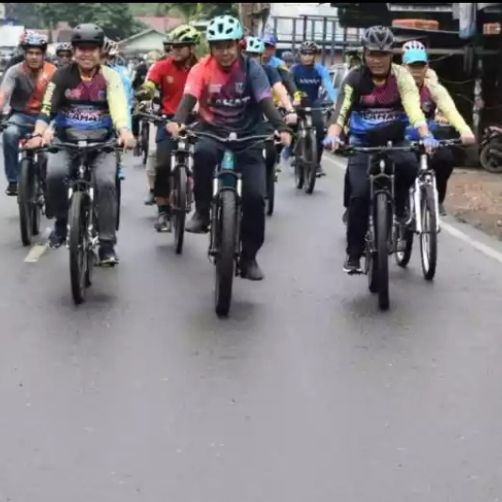Bupati Lahat Cik Ujang,SH beserta rombongan bersepeda dengan rute start dari Pemda Lahat-depan SMA N 2 Lahat-Bandar Agung-Pasar Lama Lahat-Finish di Pemda Lahat.