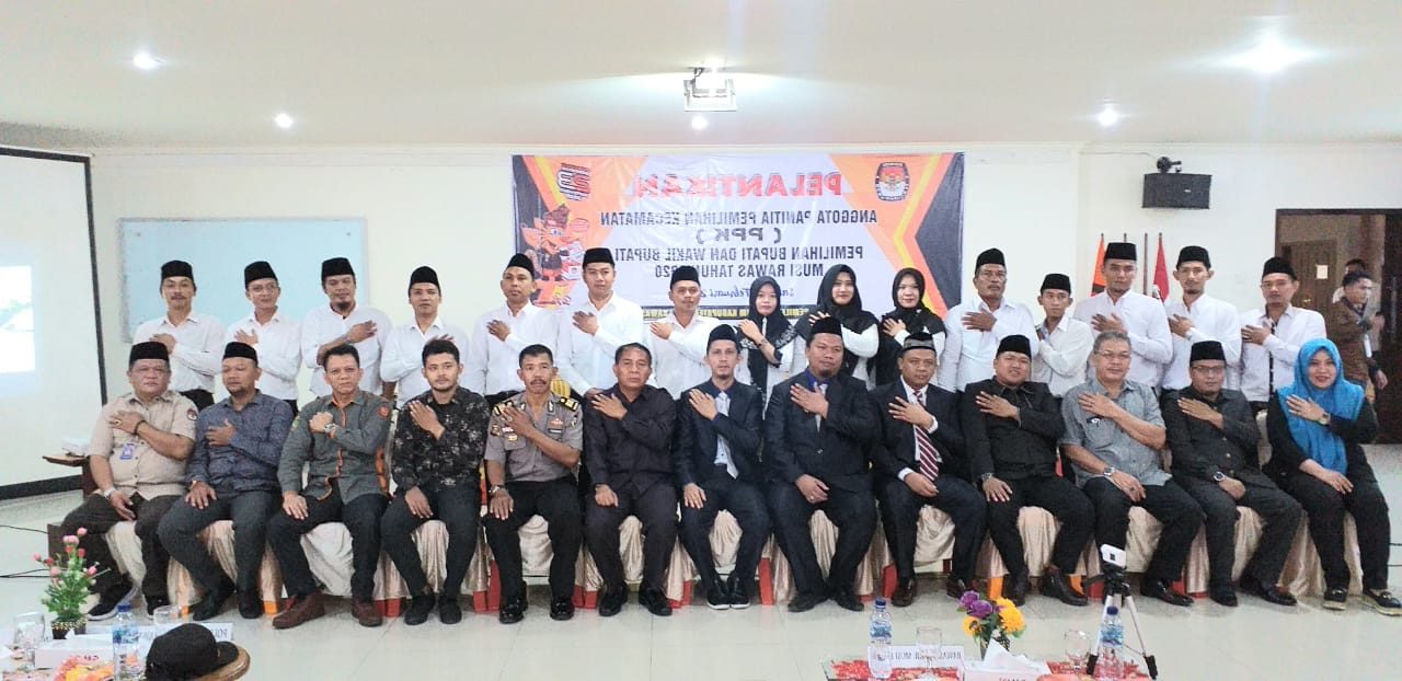KORDANEWS- Komisi Pemilihan Umum (KPU) Kabupaten Musi Rawas, Sabtu (29/2) pagi di Smart Hotel Lubuklinggau, melantik 70 anggota Panitia Pemilihan Kecamatan (PPK) terpilih di 14 kecamatan, ditandai dengan pengucapan sumpah/janji yang dipandu oleh Ketua KPU Anasta Tias diikuti oleh seluruh calon anggota PPK terpilih.