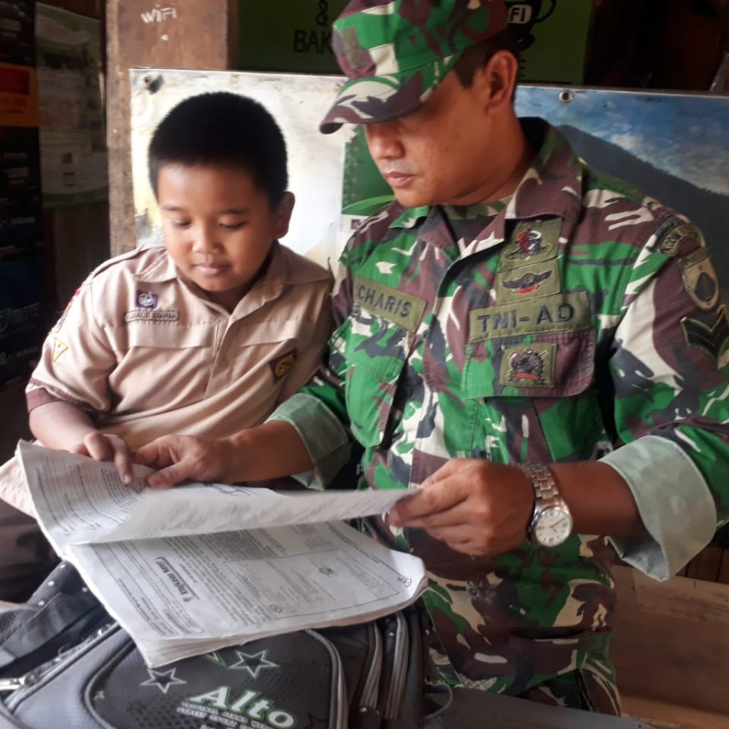 Sertu M.Charis, salah satu anggota satgas yang aktif dalam sosialisasi perpustakaan keliling ini mengungkapkan bahwa dirinya berkeliling desa dengan terus menghadirkan jendela ilmu bagi warga khususnya anak-anak sekolah.