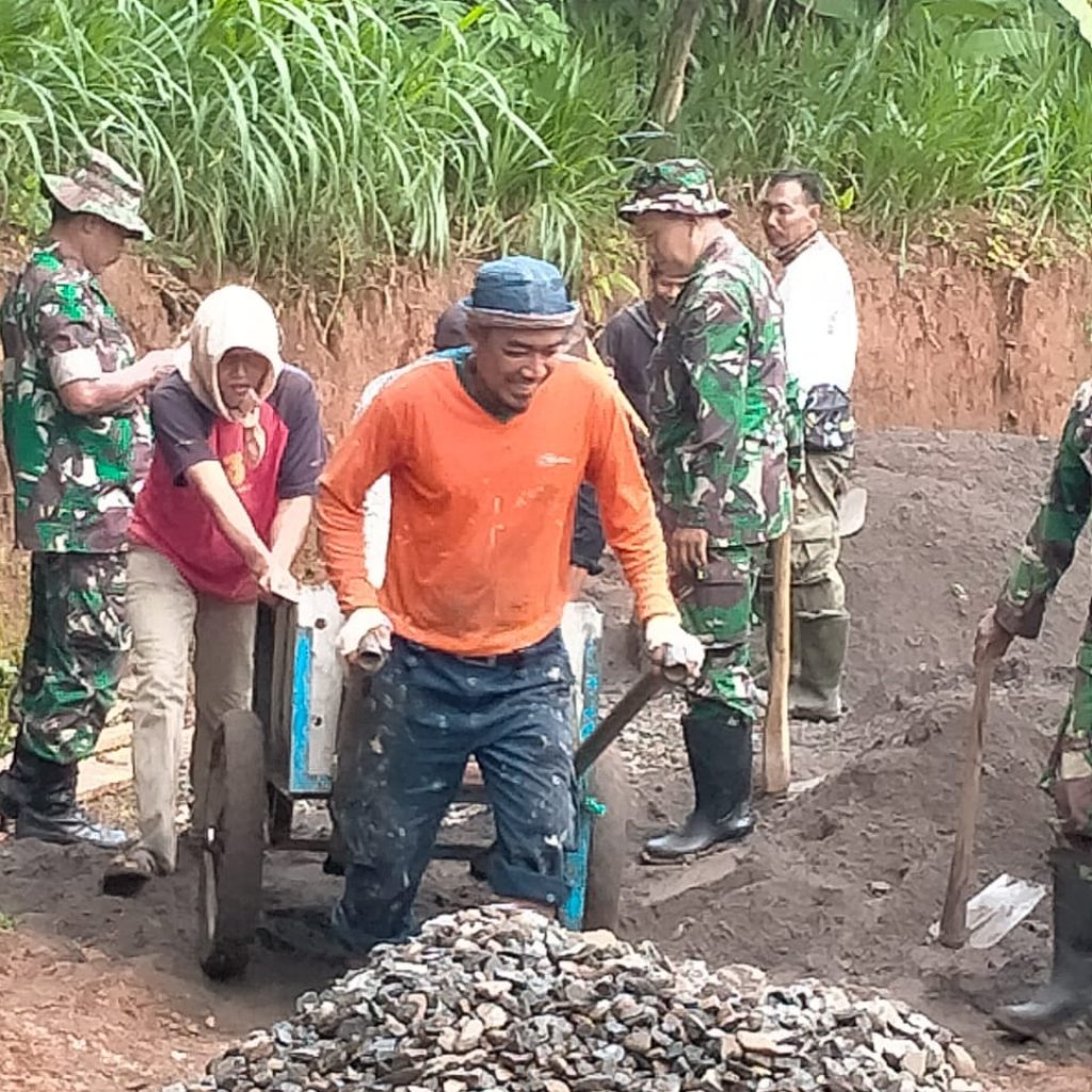 Walaupun cuaca cukup panas namun semangat gotong royong antara Satgas Pra TMMD dan warga masyarakat perlu di acungi jempol.