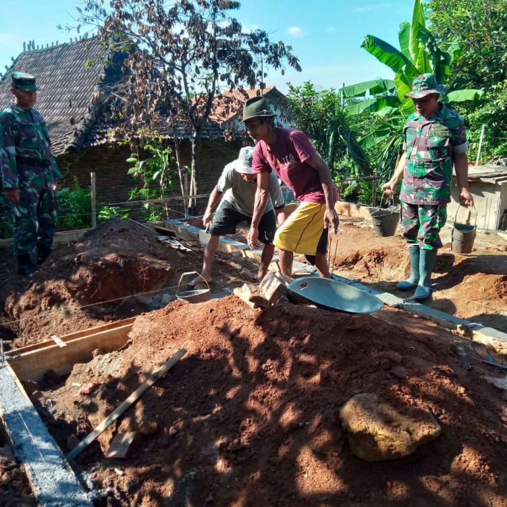 Kapten Inf Sukaryono selaku kordinator lapangan dalam bedah rumah,selalu ikut serta dalam pembuatan pondasi bedah rumah agar target pembuatan RTLH milik bapak Sulkan cepat selesai.