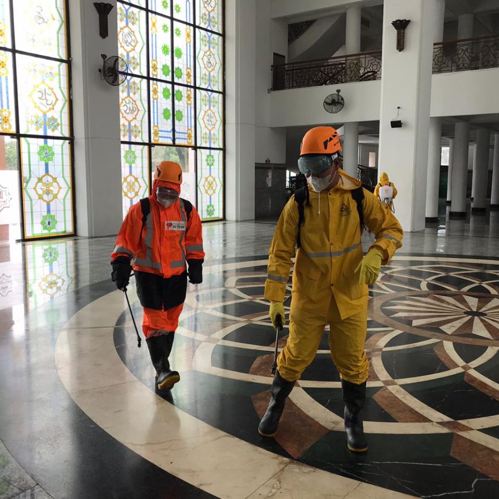 Cegah Virus Corona, Rumah Zakat Semprot Masjid Agung Palembang