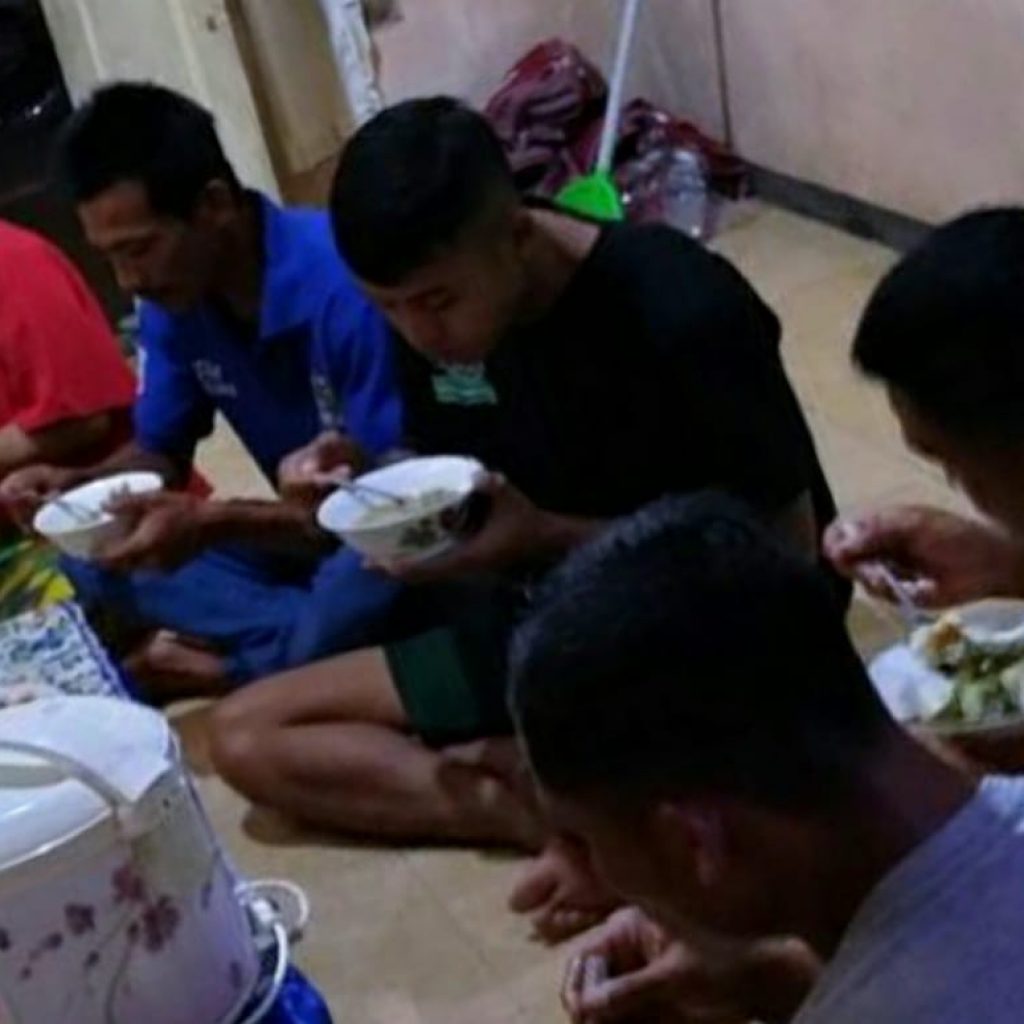 Usai melakukan kegiatan fisik seharian para anggota satgas TMMD 107 Kodim Kudus, istirahat di salah satu rumah warga selaku orang tua asuh dan turut menikmati makan malam bersama dirumah bapak Soleh warga Dukuh Talun, Desa Kedungsari, Kecamatan Gebog.