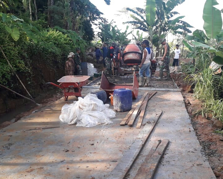 Kordanews – Warga bersama TNI bergotong royong saat pembangunan jalan program Tentara Manunggal Membangun Desa (TMMD) ke 107 Kodim 0722/Kudus di Desa Kedungsari, Kecamatan Gebog, Kabupaten Kudus. Rabu, (25/03/2020)