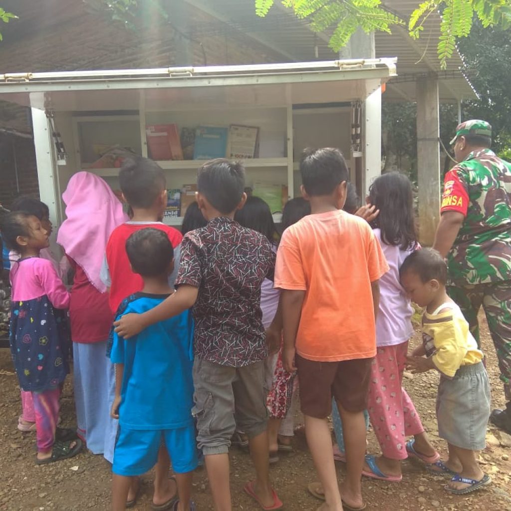 KORDANEWS – Team Perpustakaan keliling menyediakan sarana buku bacaan untuk anak-anak di lokasi TMMD reguler ke-107 Kodim 0722/Kudus, di Desa Kedungsari Kecamatan Gebog Kabupaten Kudus,Sabtu (28/3/2020).
