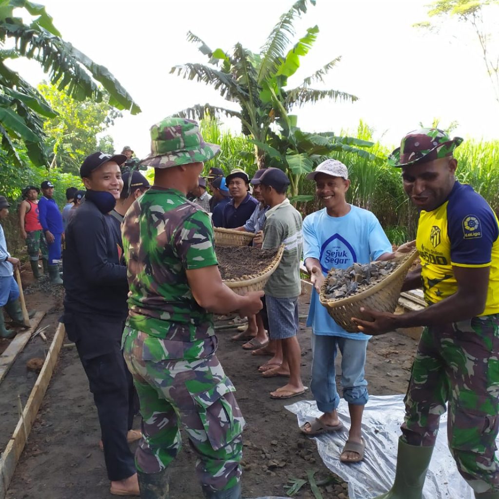 Dengan kerja gotong – royong serta bahu membahu antara anggota Satgas TMMD Kodim Kudus bersama warga setempat memang sangat efektif di lakukan karena kegiatan pengecoran jalan sepanjang 900 meter dan lebar 3 meter membutuhkan tenaga yang banyak sehingga dapat selesai sesuai waktu yang di tentukan program. TMMD Kodim Kudus.