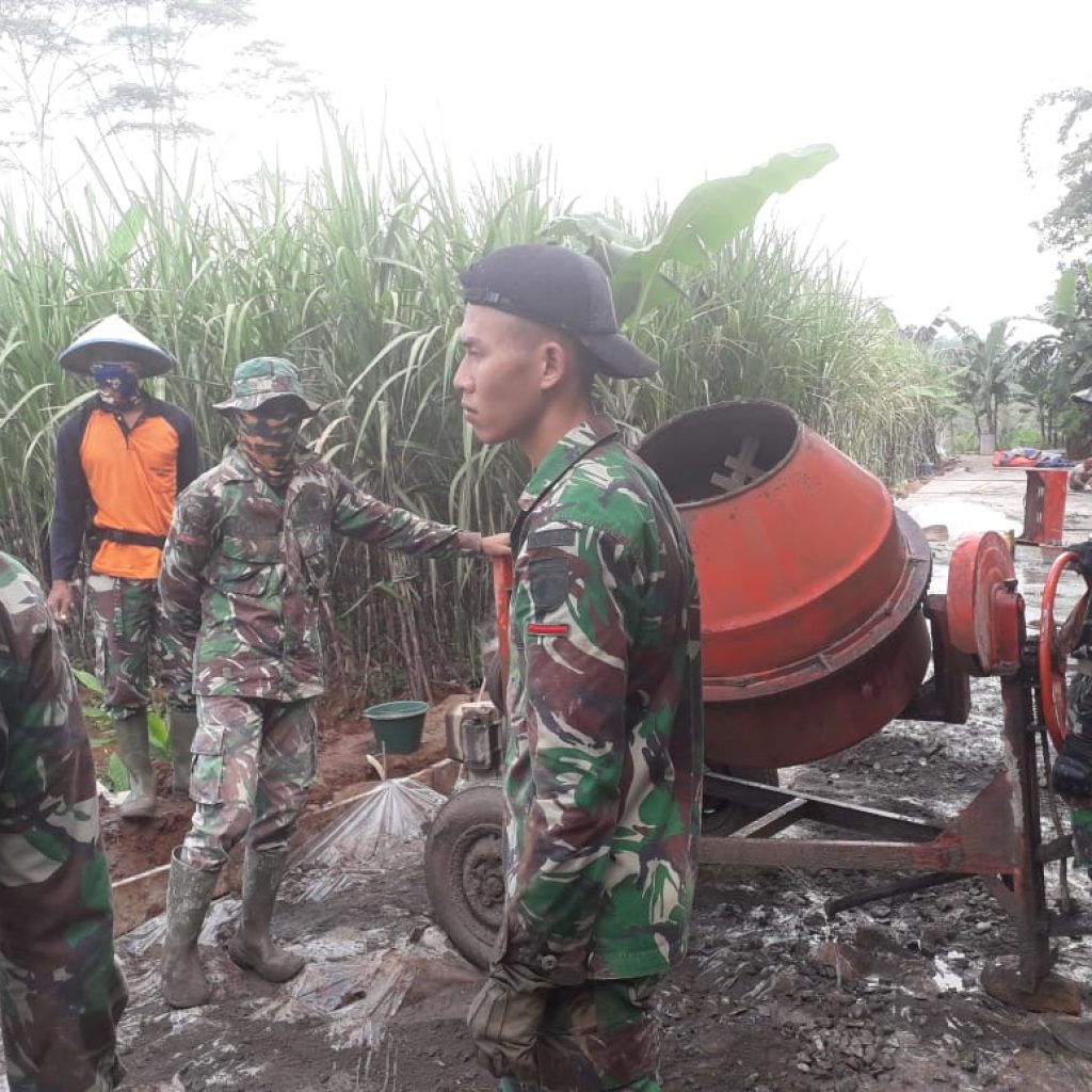 Semangatnya anggota Satgas TMMD Reguler Ke-107 pun merasa tergerak akan motivasi dan semangat termasuk juga warga Desa Kedungsari.”Ayo kita siapkan dan dekatkan lagi ke molen material pasir dan seplitnya,”teriak Pratu Heru,anggota 410/Alugoro di tengah- tengah warga yang sibuk angkat material dan saling bahu-membahu agar pekerjaan cepat selesai.