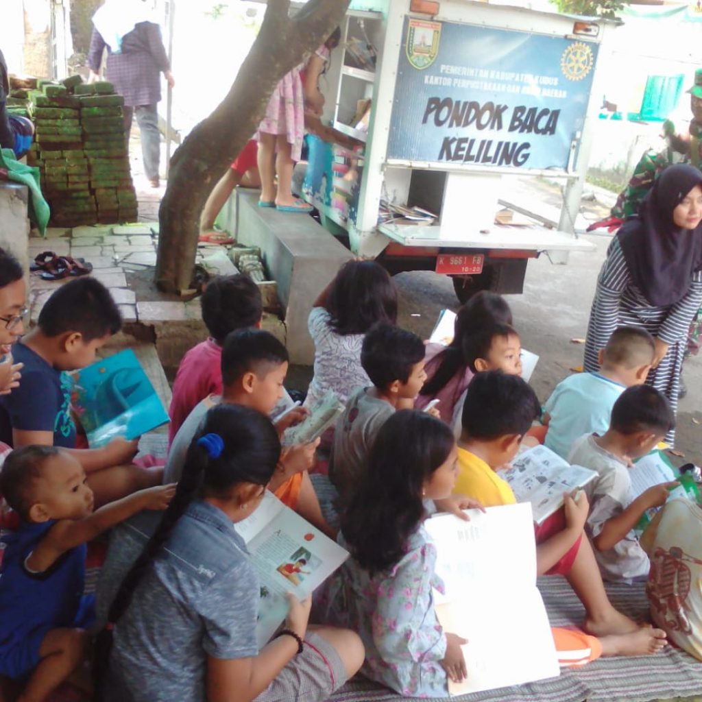 Mereka sangat senang sekali membaca buku dan belajar di Perpustakaan pondok baca, yang disediakan oleh Serda Suroto anggota Satuan Tugas (Satgas) Tentara Manunggal Membangun Desa (TMMD) Reg ke-107 Kodim 0722/Kudus.