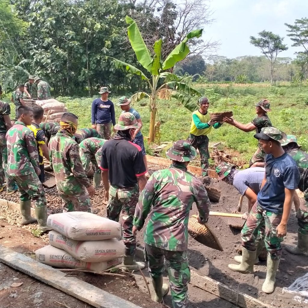 Kordanews – Lokasi pengecoran jalan yang merupakan sasaran fisik utama TMMD Reguler Ke-107 Kodim 0722/Kudus merupakan lokasi yang sulit di lalui oleh jalur transportasi,untuk itu masalah droping material anggota Satgas TMMD bersama warga nasyarakat bergotong royong maupun secara estafet melangsir material ketempat pengerjaan pembangunan yang berlokasi di Desa Kedungsari,Kecamatan Gebog,Kabupaten Kudus,Jum’at (3/4/2020).