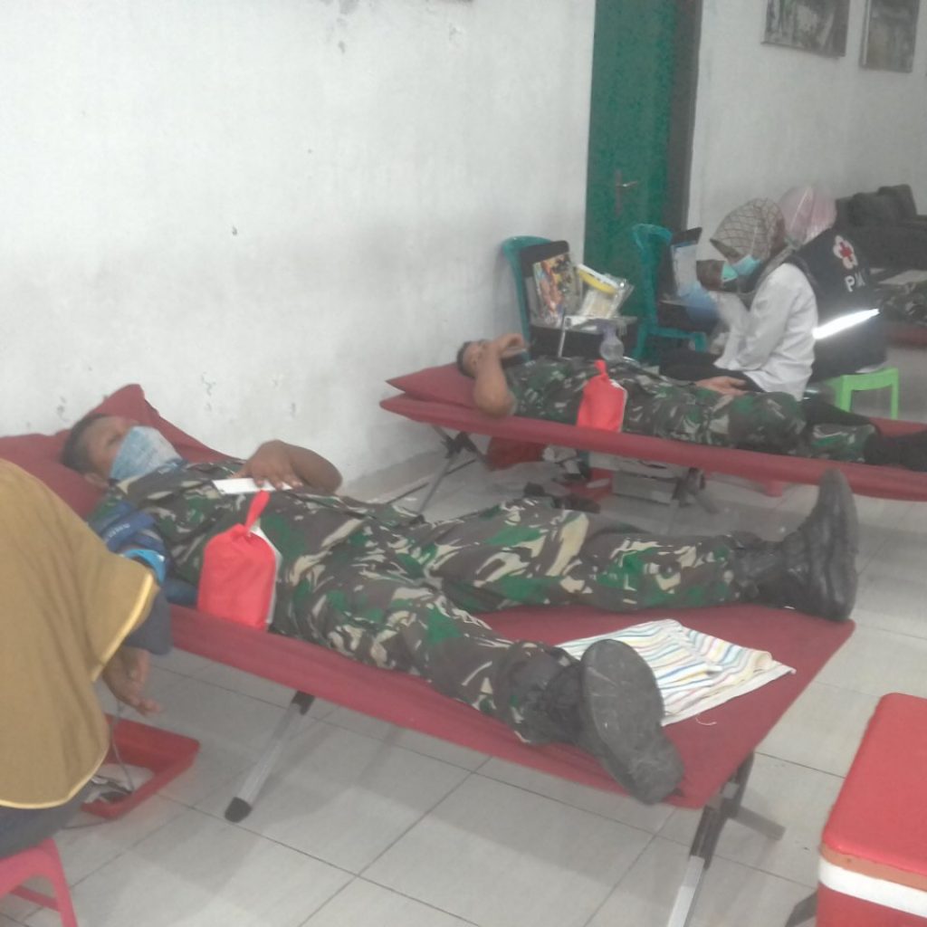 Kordanews – Satgas TMMD Reguler 107/Kodim 0722/Kudus, menyelenggarakan donor darah sebagai kegiatan non fisik bekerjanya sama dengan Palang Merah Indonesia (PMI) Kabupaten Kudus, Selasa (7/4/2020).