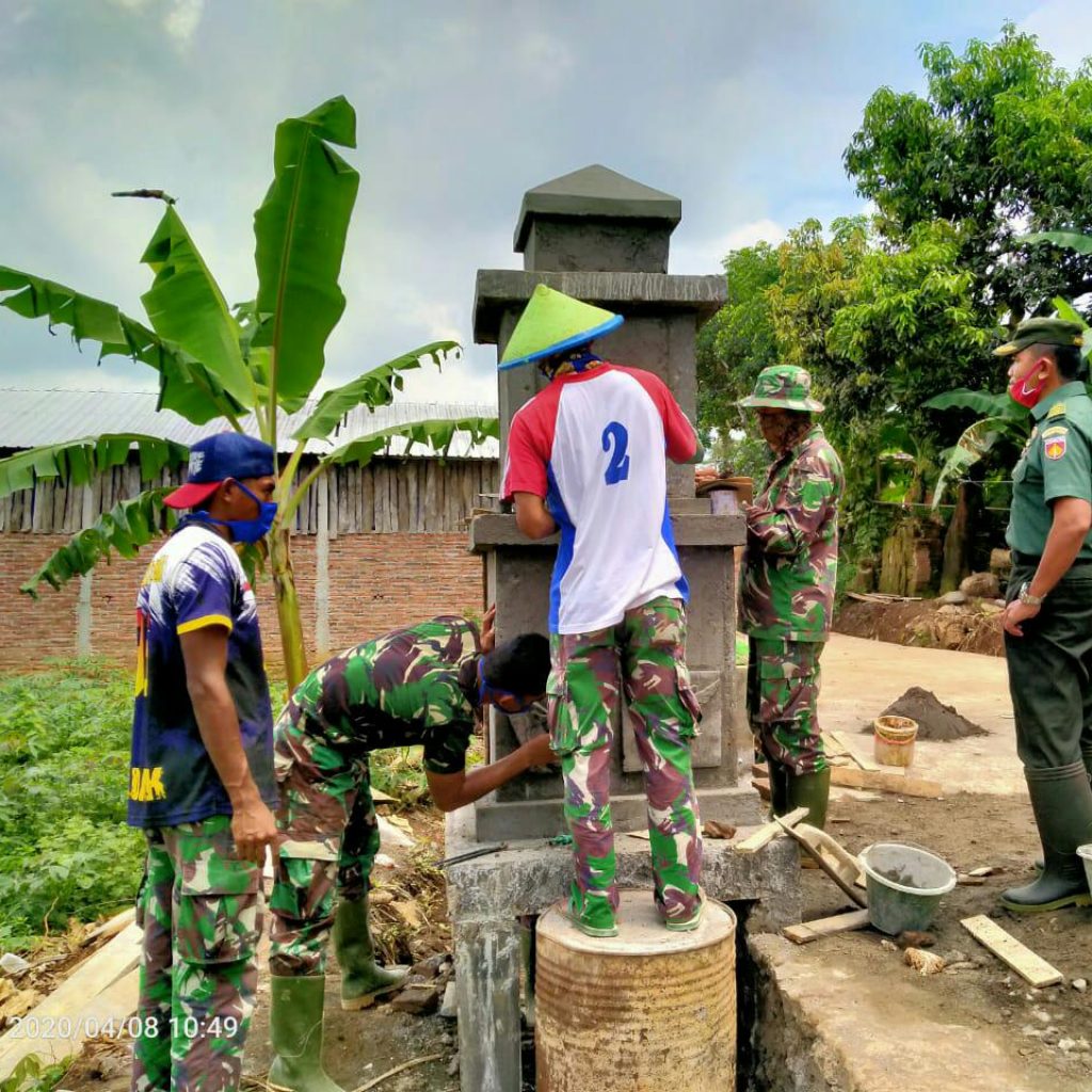 Kordanews – Anggota Satgas TMMD Reguler ke 107 Kodim 0722/Kudus,sedang mengerjakan pembuatan “Tugu Prasasti” di pertigaan jalan masuk Dukuh Talun Desa Kedungsari Kecamatan Gebog Kabupaten Kudus. Kamis (09/04/2020).