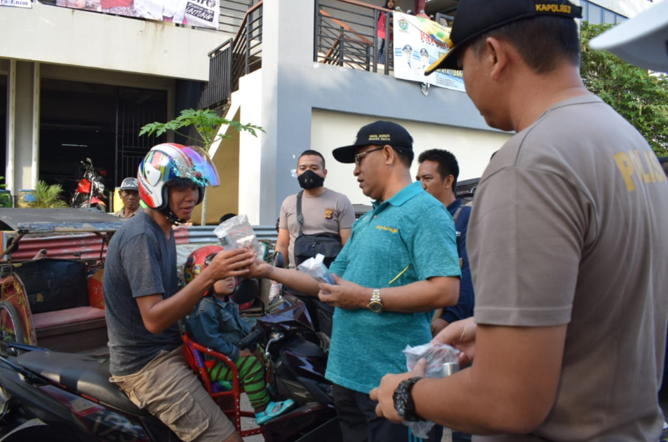 Selain aktivitas bersih-bersih di lingkungan sekitar Pasar Inpres, Plt. Bupati Muara Enim, bersama Kapolres dan Sekda membagikan cairan pembersih tangan (hand sanitizer) dan vitamin dari Dinas Kesehatan kepada beberapa warga maupun pedagang di sekitar pasar.