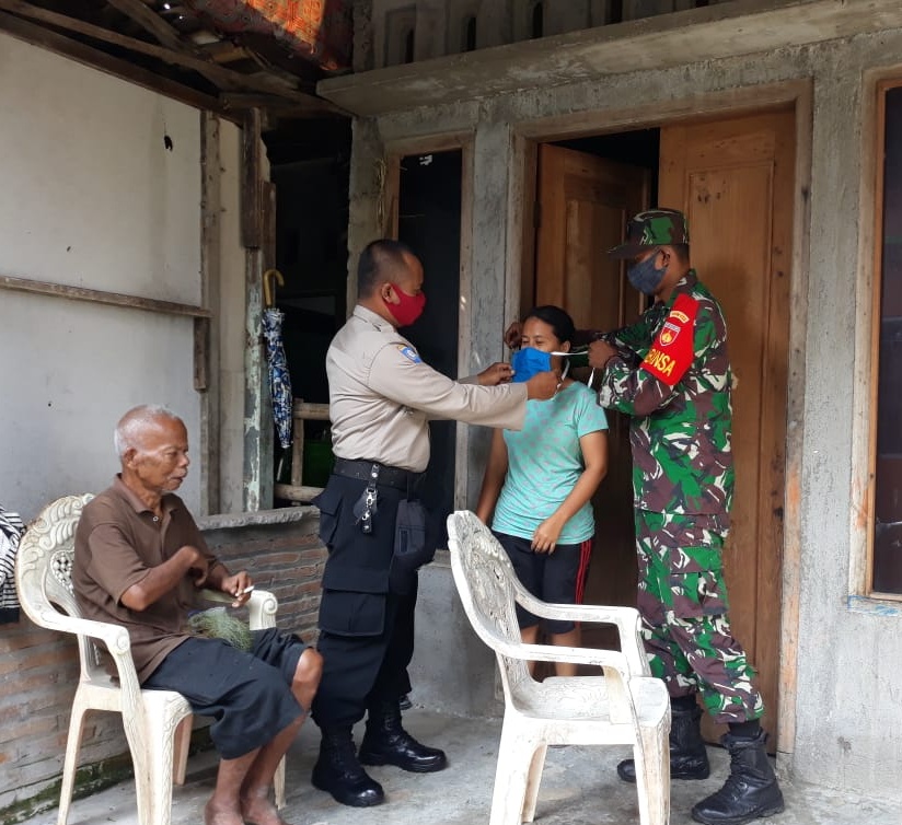 TNI Polri Mengenakan Masker Kepada Warga masyarakat