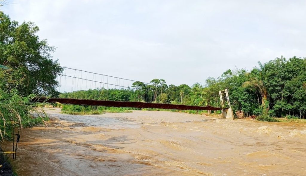 Aan warga sekitar mengatakan, hujan memang cukup lebat sehingga sungai enim meluap dan jembatan inipun rusak.