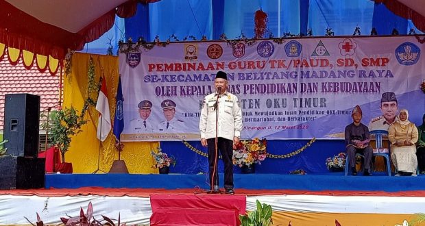 KORDANEWS – Guru TK/Paud, SD dan SMP SE-Kecamatan Belitang Madang Raya mengikuti pembinaan yang langsung dihadiri Bupati OKU Timur H.M Kholid MD, Kepala Dinas Pendidikan dan Kebudayaan OKU Timur. Kamis (12/03/2020) di halaman sekolah SMPN 1 BMR.