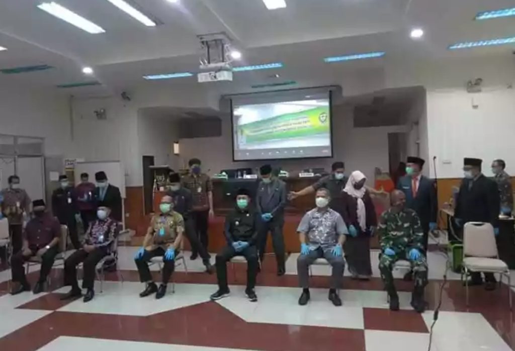 “Sebanyak135 orang pejabat yang dilantik, dimana sebagian besar para pejabat berada di Kantor masing- masing dan disinipun dilakukan dengan mematuhi protokol kesehatan, menjaga jarak, memakai masker serta menggunakan handscun, hal ini lakukan guna memutus rantai penyebaran wabah Covid-19, “jelas Plt Bupati.