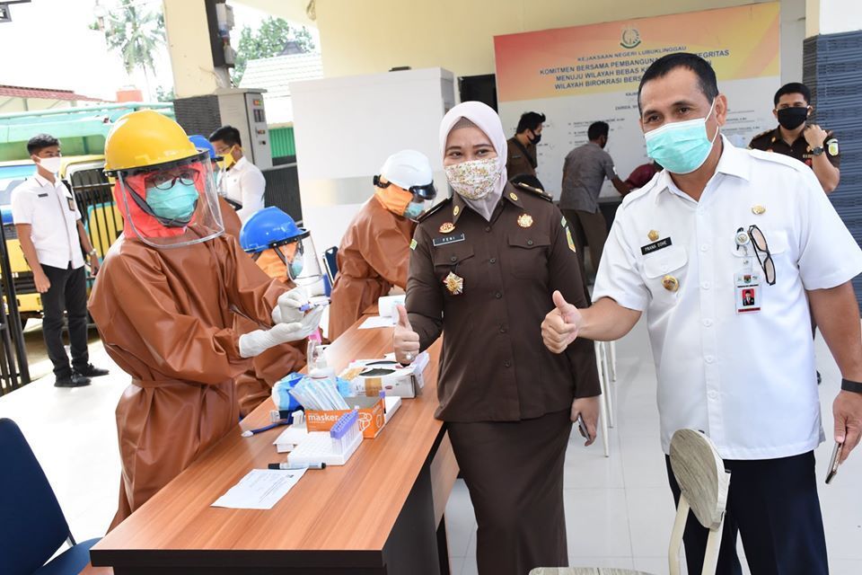 Pegawai dilingkungan Kejari Lubuklinggau yang berjumlah 60 orang, mengikuti rapid test. Tampak Kajari bersama para Kasi juga ikut dalam tes tersebut. Kajari Lubuklinggau, Feni Nilasari menjelaskan dalam rapid test ini seluruh peralatan medis yang tersedia didistribusikan dari Kejagung RI melalui Kejati Sumsel. Adapun tenaga medisnya, difasilitasi oleh Pemkot Lubuklinggau.