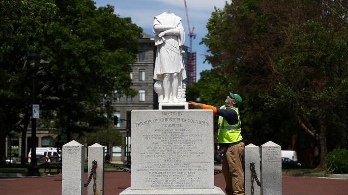 Patung Columbus yang berdiri di jantung kota Boston menjadi kontroversial selama bertahun-tahun, seperti patung serupa lainnya di seluruh AS, dan telah dirusak di masa lalu.