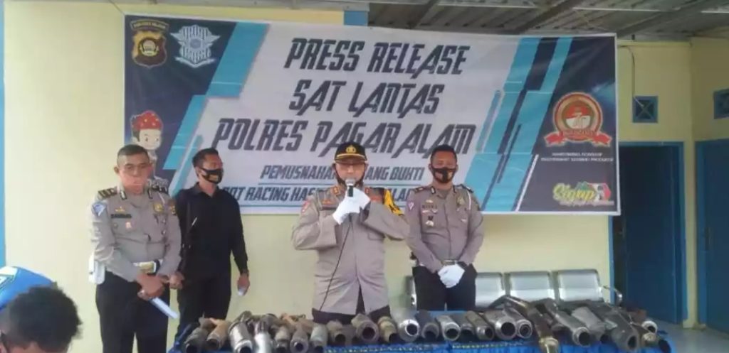 Dalam rilisnya Kapolres menjelaskan bahwa pemusnahan knalpot racing ini hasil dari sitaan operasi balapan liar pada bulan puasa lalu terhadap para pengendara motor yang kerap melakukan balapan liar di jalan umum dan bukan pada tempatnya dan ini menjadi keluhan masyarakat hal inilah yang menjadi tantangan Polres Pagar alam terhadap mereka yang menggunakan knalpot racing,selain menyita knalpot racing Polres Pagaralam juga melakukan penilangan terhadap para pengendara sesuai dengan aturan yang berlaku.