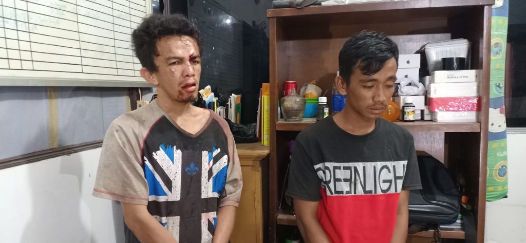 Dua sekawan ini babak belur dihakimi massa karena tertangkap usai menjambret hp milik mahasiswa bernama Aisah (24), saat melintas di Jalan Sukabangun 2 Kecamatan Sukarami Palembang.