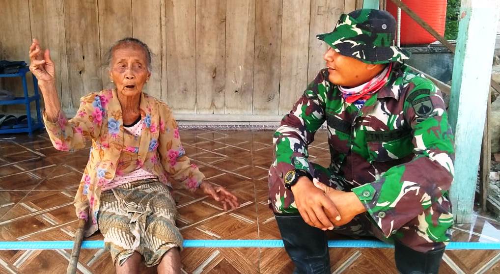 sehari-harinya dinas di Koramil 07/Wirosari, di sela-sela kesibukannya bekerja di lokasi TMMD menyempatkan untuk bersilaturahmi dengan Mbah Wartiyem (85).
