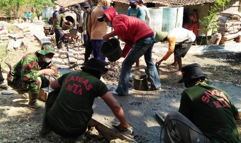 Di hari ke dua pelaksanaan TMMD yang akan berlangsung selama 30 hari itu, sejumlah anggota Majelis Tafsir Al-Qur’an (MTA) Cabang Wirosari, ikut terjun ke lokasi bergabung dengan satgas TMMD dan warga.