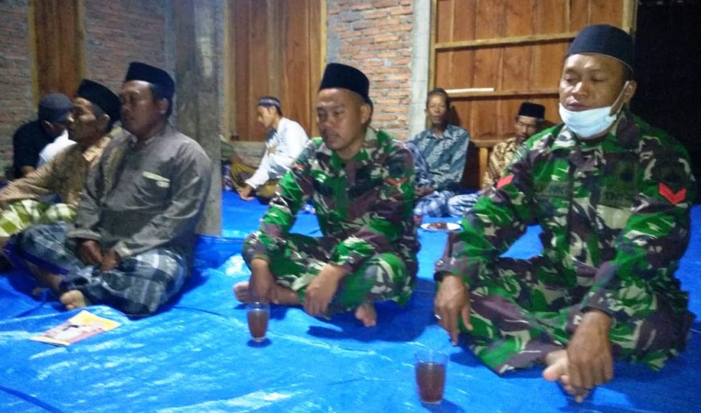 Seperti yang dilakukan Koptu lilik dengan sejulah anggota Satga TMMD yang lain, yang menyempatkan hadir di pengajian yang digelar warga desa sasaran, yakni di rumah Sunarto di RT 03/07, Desa Tambakselo. ”Sekalian untuk memantau sejauh mana warga mematuhi protokol kesehata, yakni memakai masker,” tutu Koptu Lilik.