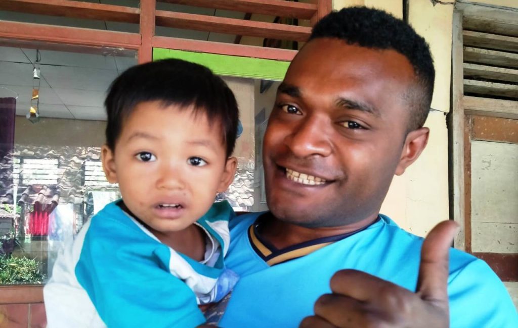 Adalah Pratu Alferdo Sani, prajurit asal Papua dari satuan Yonif 410/Alugoro, yang paling lekat dengan anak-anak di Desa Tambakselo. Di setiap harinya, di sela-sela kerja TMMD, Alfredo, selalu sempatkan diri untuk menggendong banyak balita di desa itu.