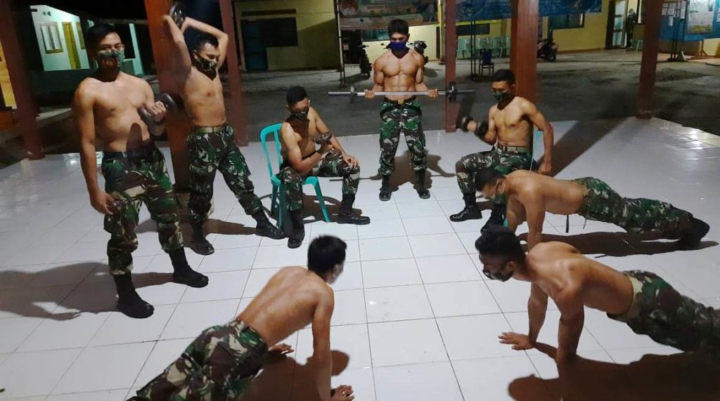 Mereka, para satgas melakukan fitnes kebugaran dengan dipimpin langsung Pelda Bogi Muryono, di sore hari usai bekerja di sejumlah sasaran fisk. Untuk tempat, menyesuaikan karena jenis olah raga itu tidak memerlukan alat dan sebuah ruangan luas.