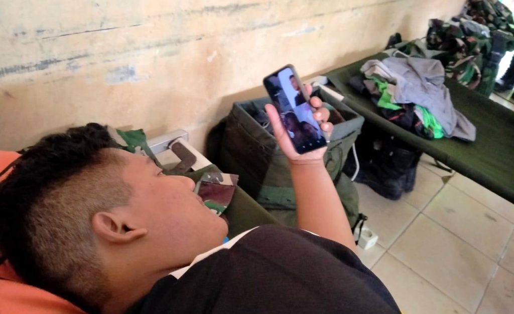 Disaat malam, setelah semua kegiatan TMMD usai, Pratu Yoga melepas kangen keluarga pacar dengan video call.”Ini salah satu cara untuk mengusir jenuh karena rutinitas sehari-hari bekerja di lokasi TMMD. Disaat jaman canggih seperti ini, semua tanpa batas,” ujar Pratu Yoga.