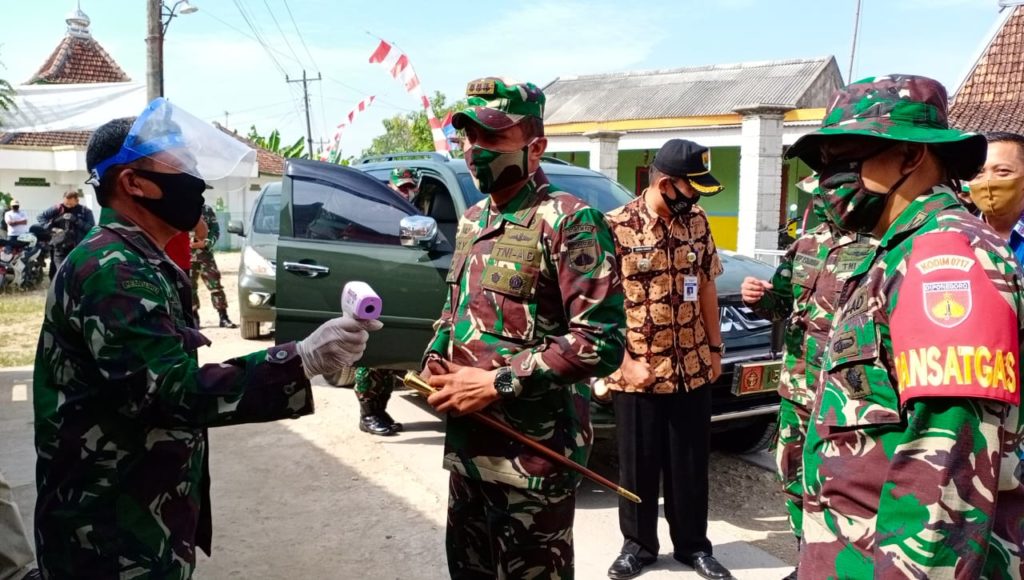 Semua yang akan berkegiatan di desa sasaran TMMD, harus mengikuti protokol kesehatan. Termasuk Komandan Korem 073/Makutarama, Kolonel Inf Ari Yulianto, S.I.P, yang melakukan kunjungan ke lokasi TMMD wajib ikuti protokol kesehatan. Salah satunya jalani pengukuran suhu tubuh .
