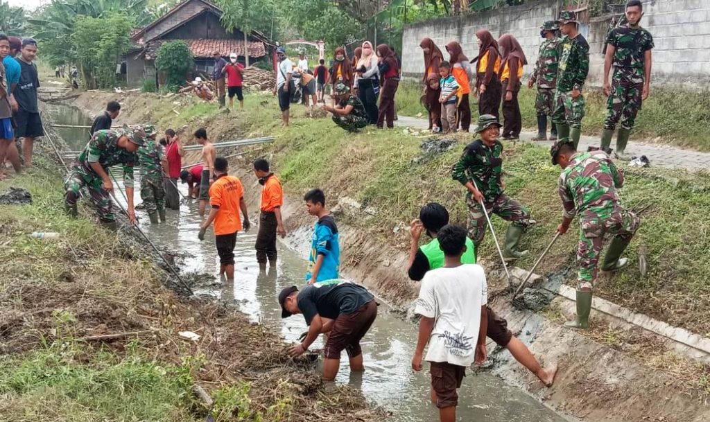 TNI Pelopori Banyak Pramuka Untuk Bersihkan Irigasi