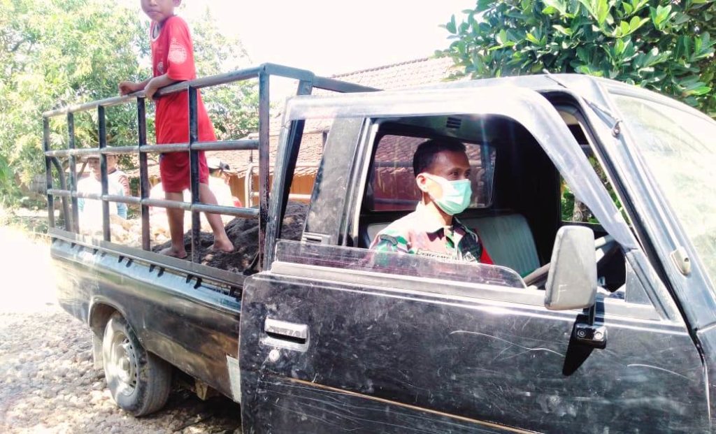Seperti yang dilakukan Serka Sugeng, anggota satgas TMMD yang sehari-harinya tugas di Koramil 07/Wirosari, yang siap untuk menjadi sopir pocokan untuk mendukung semua pekerjaan TMMD di Tambakselo.