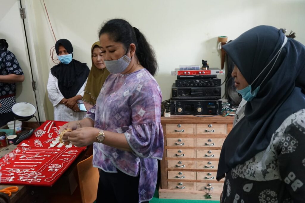 “Kita ingin motif khas Sumsel diangkat ke pasaran. Misalnya motif pending, bisa digunakan sebagai ikat pinggang atau dijadikan bros. Terus ada juga gelang motif sempurun. Nantinya kan bisa dimodifikasi dari motif lama dengan motif baru, tentu akan lebih unik”, terangnya.