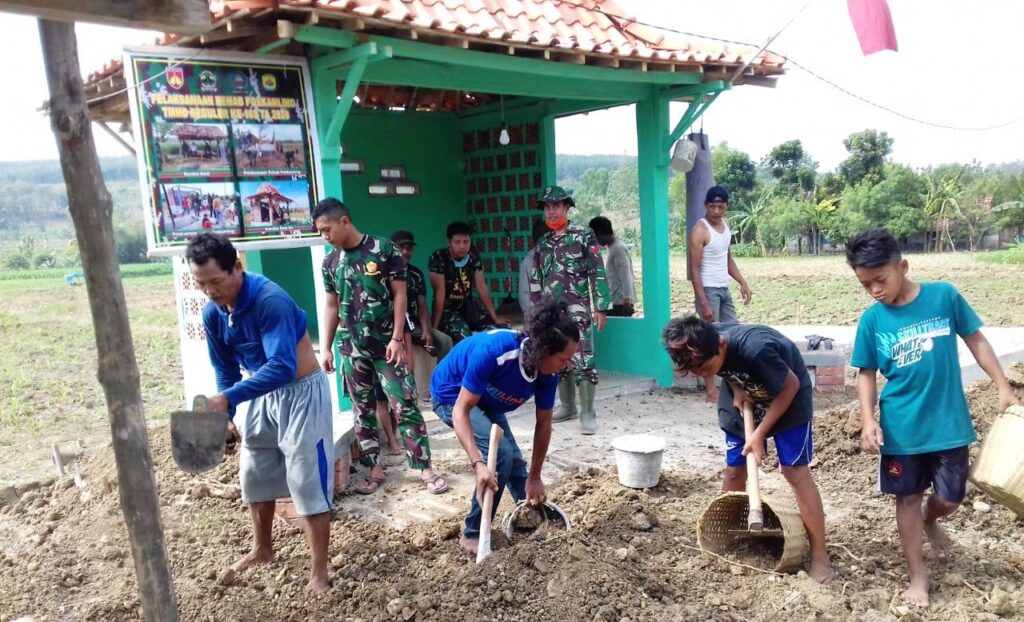 Kordanews – TNI anggota Satgas TMMD Reguler ke -108 Kodim 0717/Purwodadi, bersama warga desa sasaran, Desa Tambakselo, Kecamatan Wirosari, Kabupaten Grobogan, Jawa Tengah, terus benahi hasil bangunna Pos Kamling yang baru saja diselesaikan.