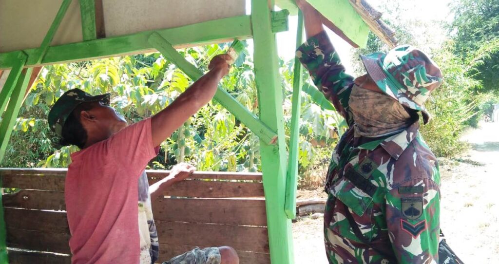 Demikian juga yang dilakukan oleh Sertu Supriyono, salah satu anggota Satgas TMMD, meskipun ploting tugasnya tidak di pembangunan Pos kamling, dia nekad meluangkan waktu untuk datang ke lokasi pembangunan Pos Kamling dan ikut melakukan pengecatan.
