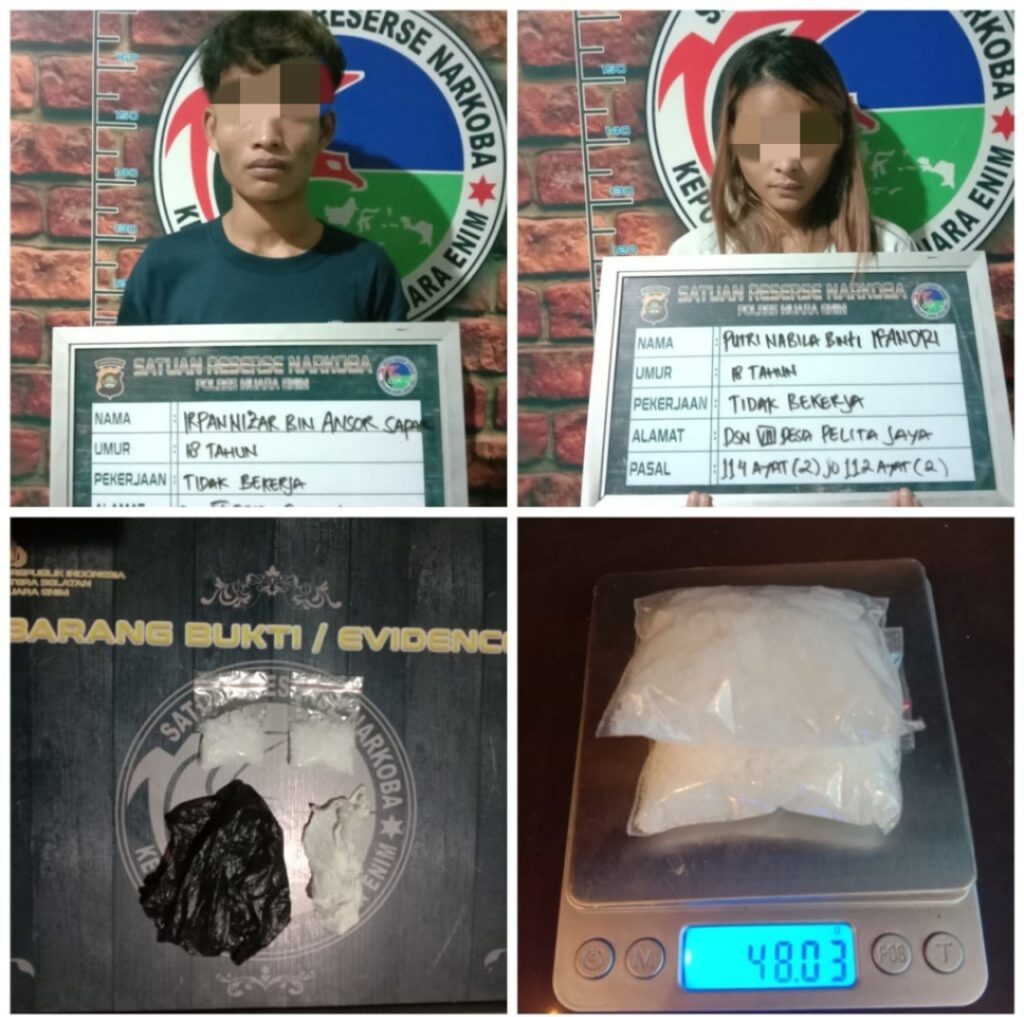 “Pelaku dan barang bukti berupa 2 (dua) paket diduga narkotika jenis sabu dengan berat bruto 48,03 gram, 1 (satu) kantong plastik warna hitam dan 1 (satu) tisu warna putih, sudah kita amankan di Sat Res Narkoba Polres Muara Enim guna dilakukan pemeriksaan lebih lanjut, pungkas Kasat Res Narkoba Polres Muara Enim.” katanya.