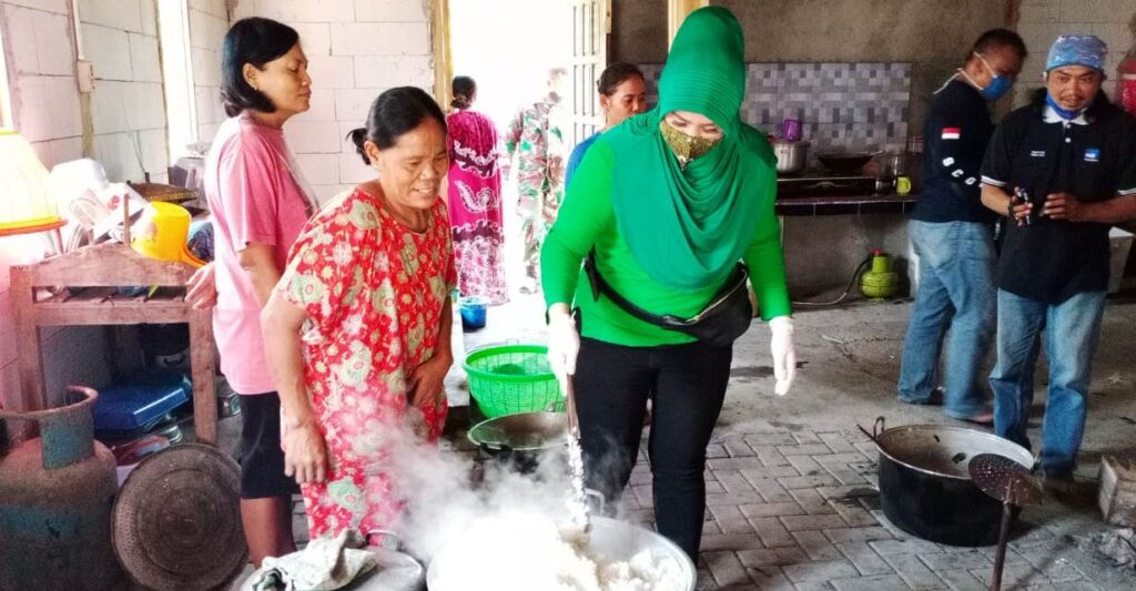 Menyusul, kehadiran Ketua Ketua Persit Kartika Chandra Cabang XXXVIII/Kodim Purwodadi, Ny. Dwi Asman Mokoginta pimpin, di dapur umum. Tidak hanya sedang meninjau kegiatan memasak, melainkan, ikut memasak dan menanak nasi.