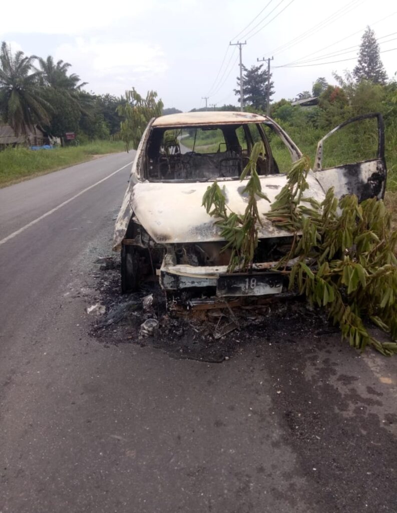 KORDANEWS – – Kondisi terbakarnya mobil dijalan Lintas Palembang-Muaraenim yang tepatnya dijalan Lintas Serdang Boster Desa Segayam kecamatan Gelumbang Kabupaten Muara Enim Sumatera Selatan pada Jum’at (24/07/2020), jadi tontonan pengguna jalan dan Masyarakat.