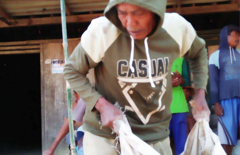 Di usianya yang sudah kepala tujuh itu, Mbah Suparman masih getol untuk kerja di sasaran fisik TMMD. Getol tidak saja sebagai peninjau, melainkan Kakek Suparman, juga masih begitu kuang untuk melangsir material dengan menggunakan karung bekas.