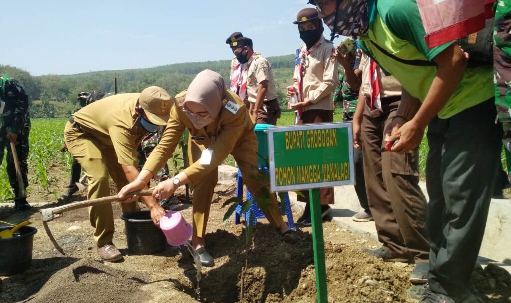 Sebuah pohon Mangga telah ditanam Bupati Sri Sumarni di seputaran bangunan Pos Kamling, yang merupakan hasil karya para TNI anggota Satgas bersama warga desa setempat.