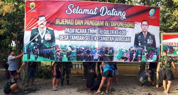 Dalam rangka kunjungan itu, dengan dibantu warga, para anggota Satgas melakukan sejumlah persiapan, diantaranya memasang baliho raksasa ucapan selamat datang, kepada sang Jendral ke lokasi TMMD.