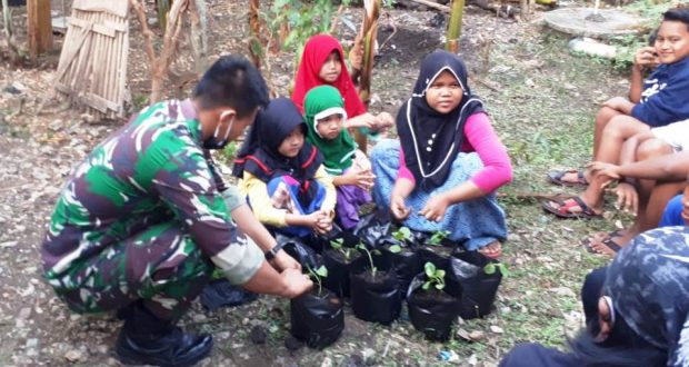 Satgas TMMD Ajari Anak Tambakselo Tanam Sayur Dengan Media Polybag