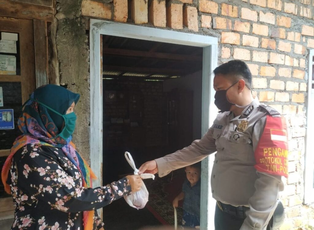 KORDANEWS – MUARAENIM – Pendistribusian Daging Kurban dilakukan Polres Muaraenim secara Door to Door, hal ini dilakukan guna mencegah kerumunan massa dengan datang kerumah masing warga oleh Bhabinkamtibmas Polres Muaraenim, Saptu (01/08/2020) sesuai dengan protokol kesehatan covid 19.