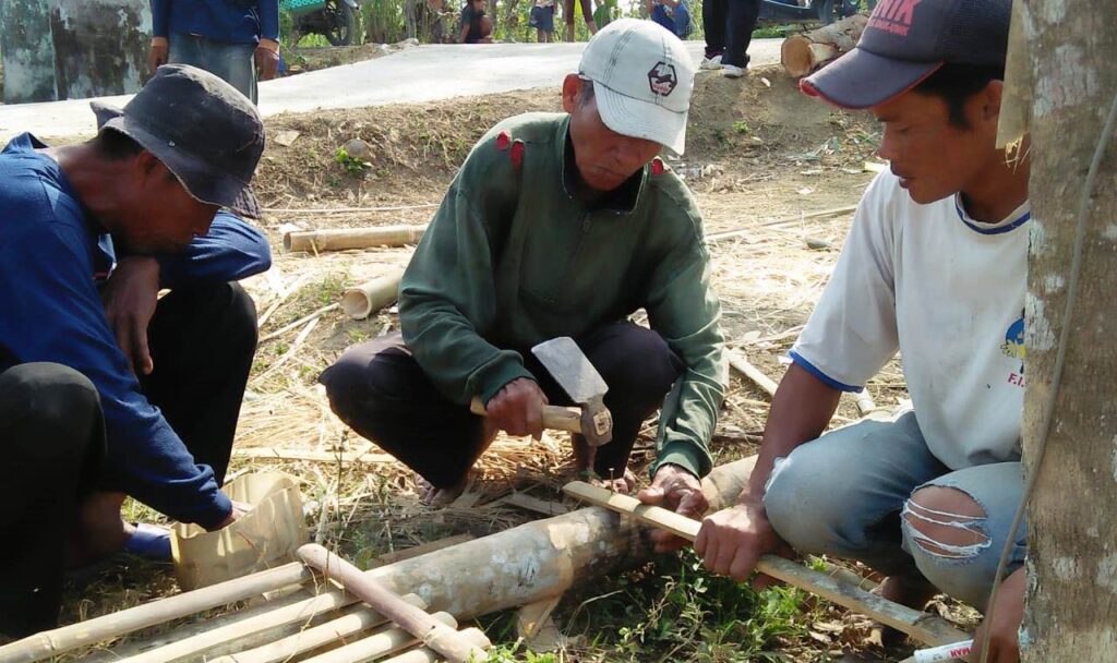 Sperti tamak di Dusun Kenteng, Desa Tambakselo. Tampak Mbah Juwari ( 70) dan sejumlah warga lainnya mendirikan gapura dari bambu yang akan ditempatkan di ujung jalan yang baru selesai di bangun oleh TNI melalui program TMMD. Hal itu dilakukan warga dalam rangka untuk memeriahkan hari Kemerdekaan Indonesia .