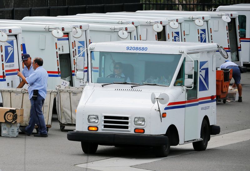 FILE PHOTO: U.S. postal workers load their trucks with mail for delivery from their postal station in Carlsbad, California February 6, 2013. REUTERS/Mike Blake/File Photo