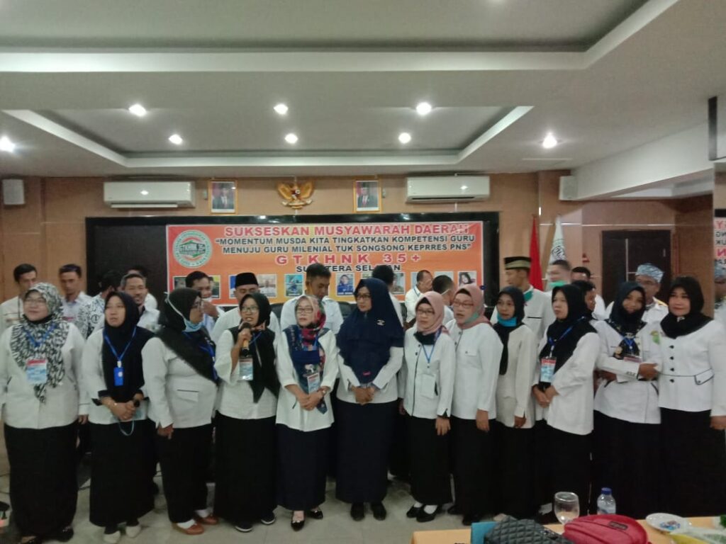 KORDANEWS-Guru Dan Tenaga Kependidikan Honorer Non Kategori (GTKHNK) se-Sumatera Selatan mengadakan Musda (Musyawarah Daerah) Pertamanya pada, Minggu (09/08/20) di Hotel Swarna Dwipa, Palembang. Setelah melakukan audensi dengan Hj. Eva Susanti selaku anggota DPD RI asal Sumsel dan Wahyu Sanjaya SE, anggota DPR RI dari Partai Demokrat pada Sabtu (08/08/20) lalu terkait status guru honorer di Sumatera Selatan yang berusia diatas 35 tahun dan yang sudah tidak bisa lagi mengikuti tes CPNS untuk bisa diangkat menjadi PNS.