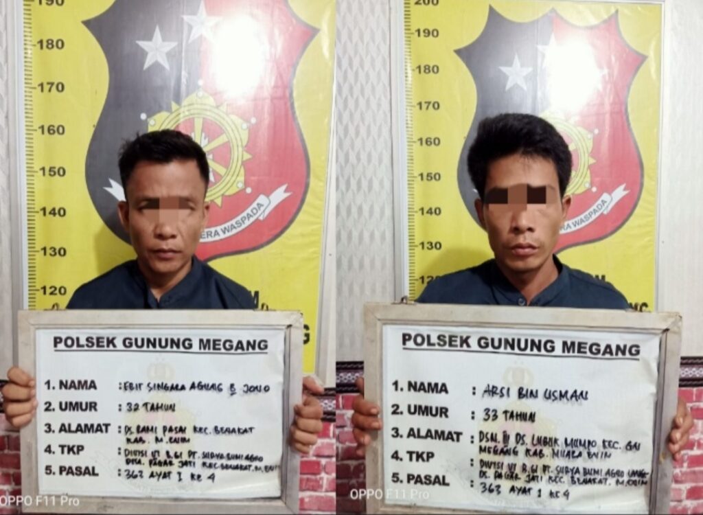 Pelaku tersebut bernama Ebit Singara Agung (32 tahun) yang berdomisili di dusun I desa Rami pasai kecamatan Benakat kabupaten Muara enim dan Arsi (33 tahun) yang berdomisili dusun III desa Lubuk mimpo kec. Gunung megang kab. Muara enim.