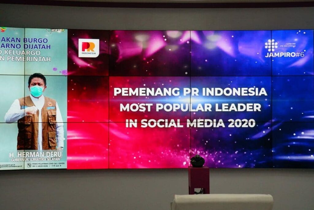 Kordanews – Gubernur Sumatera Selatan (Sumsel) H. Herman Deru kembali mendapatkan penghargaan, kali ini dalam ajang Jambore PR Indonesia (JAMPIRO) #6 Tahun 2020 dalam kategori Paling Populer di Media Sosial